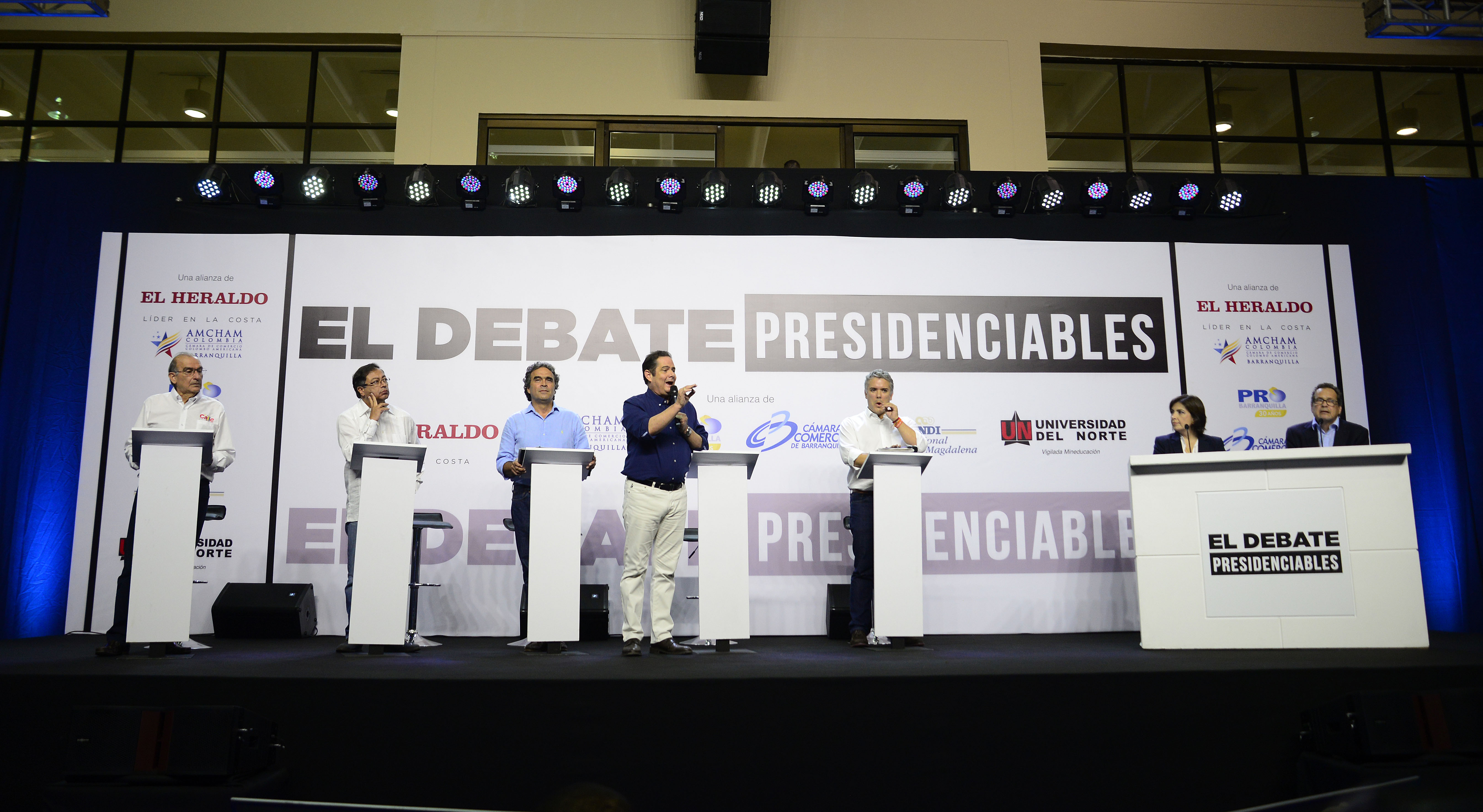 Los candidatos a la Presidencia de la República, Humberto de la Calle (1946), Gustavo Petro (1960), Sergio Fajardo (1956), Germán Vargas Lleras (1962) e Iván Duque (1976) protagonizaron un acalorado debate en la Universidad del Norte en Barranquilla. Pero el calor no fue solo por estar en el Caribe sino por los abucheos del público y las discusiones que se dieron entre los presidenciables.