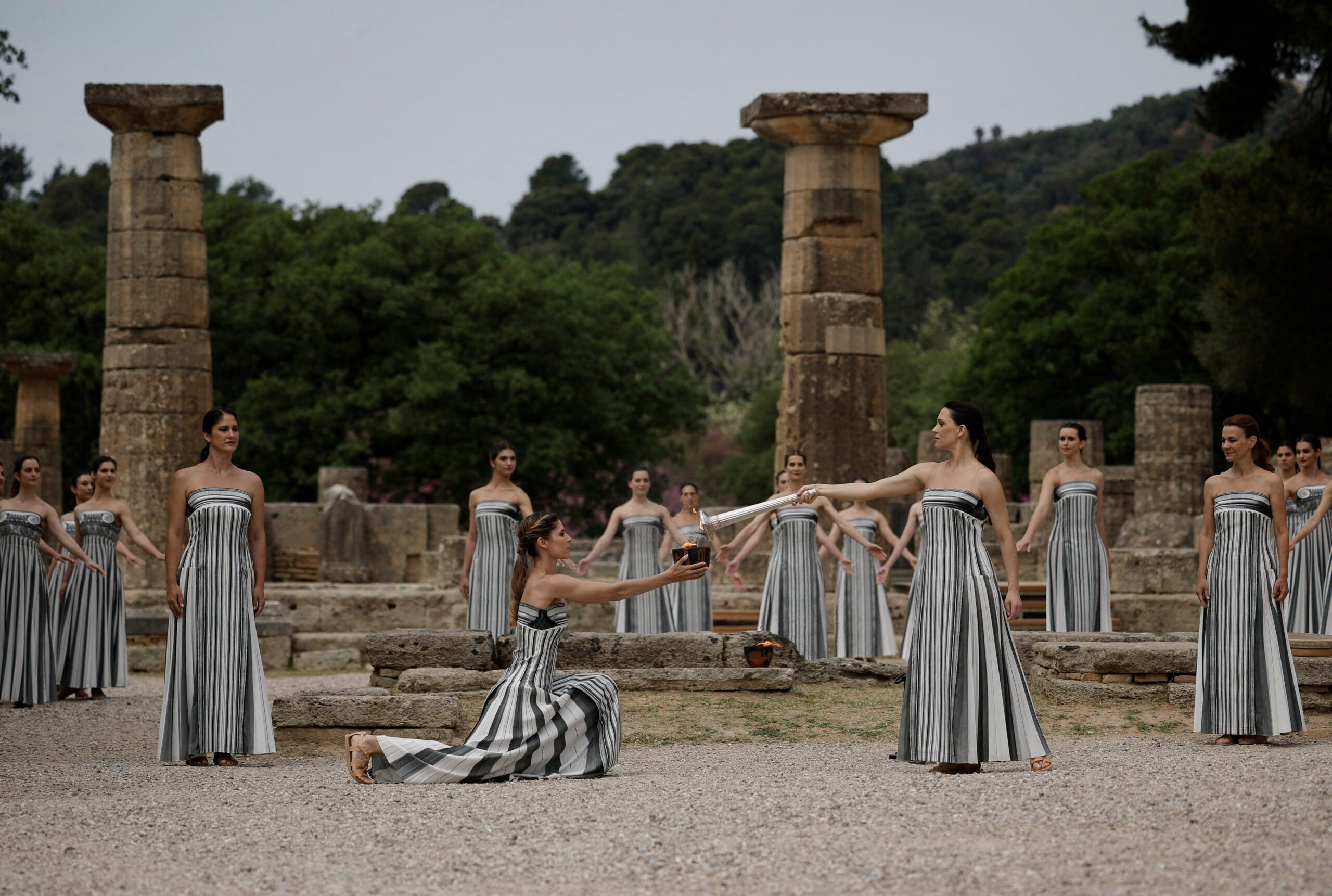 El reloj de la cuenta regresiva para los Juegos Olímpicos de París 2024, ubicado en la Torre Eiffel, marcó ayer los 100 días, mientras los preparativos para el evento entraron en su recta final. La icónica antorcha se encendió en la antigua Olimpia en medio del tradicional performance que se hace cada cuatro años, y llegará a Francia el 8 de mayo, tras un viaje en el barco de tres mástiles, Belem. (TA)