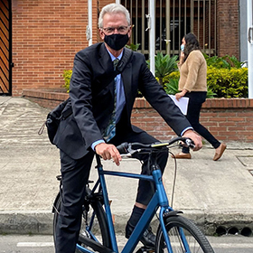 En el Día de la Bicicleta, Ernst Noorman, Embajador de los Países Bajos en Colombia, recordó que este debe ser el vehículo esencial de las personas y que Bogotá avanza por buen camino. Dijo que se transporta a diario a la Embajada de los Países Bajos por este medio porque es más rápido, más saludable, más agradable y menos contaminante y solo usa el carro en eventos extraordinarios. (LM)