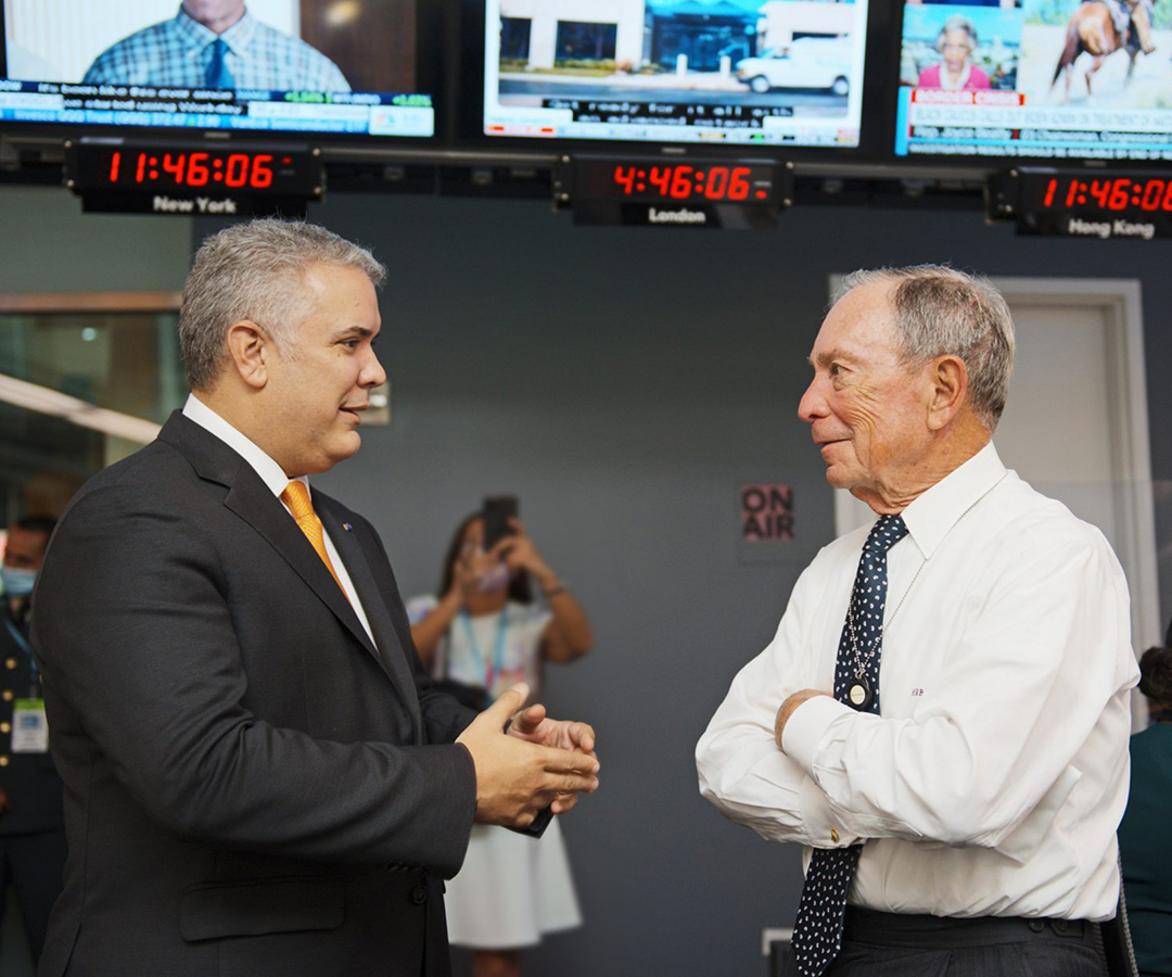 El presidente Duque (1976) cerró su visita a EE.UU. con otra foto clave, esta vez con Michael R. Bloomberg (1942), enviado especial del Secretario General de la ONU en temas climáticos. Se reunieron en Nueva York, donde Bloomberg elogió la aspiración de Colombia por ser líder en transición energética; acordaron explorar oportunidades para convocar a líderes regionales y al sector privado sobre este tema. (IB)