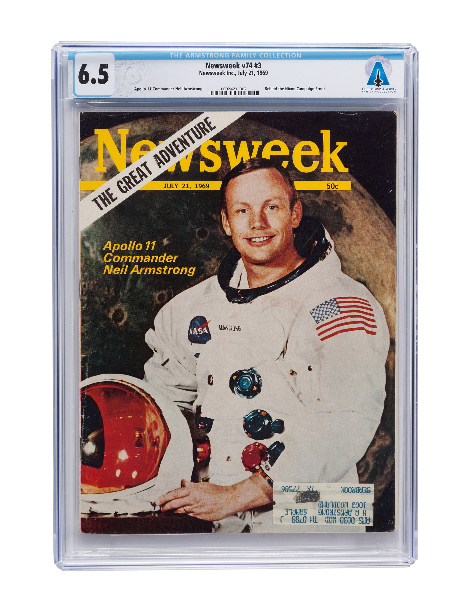 En noviembre serán subastados varios artículos personales de Neil Armstrong (1930), el primer hombre en pisar la luna. La decisión la tomaron sus hijos Mark y Rick a medida que se acerca el aniversario número 50 del lanzamiento del Apolo 11. En total, serán subastados 800 objetos, entre los que está esta copia de la revista Newsweek que fue enviada a la casa de la familia Armstrong.