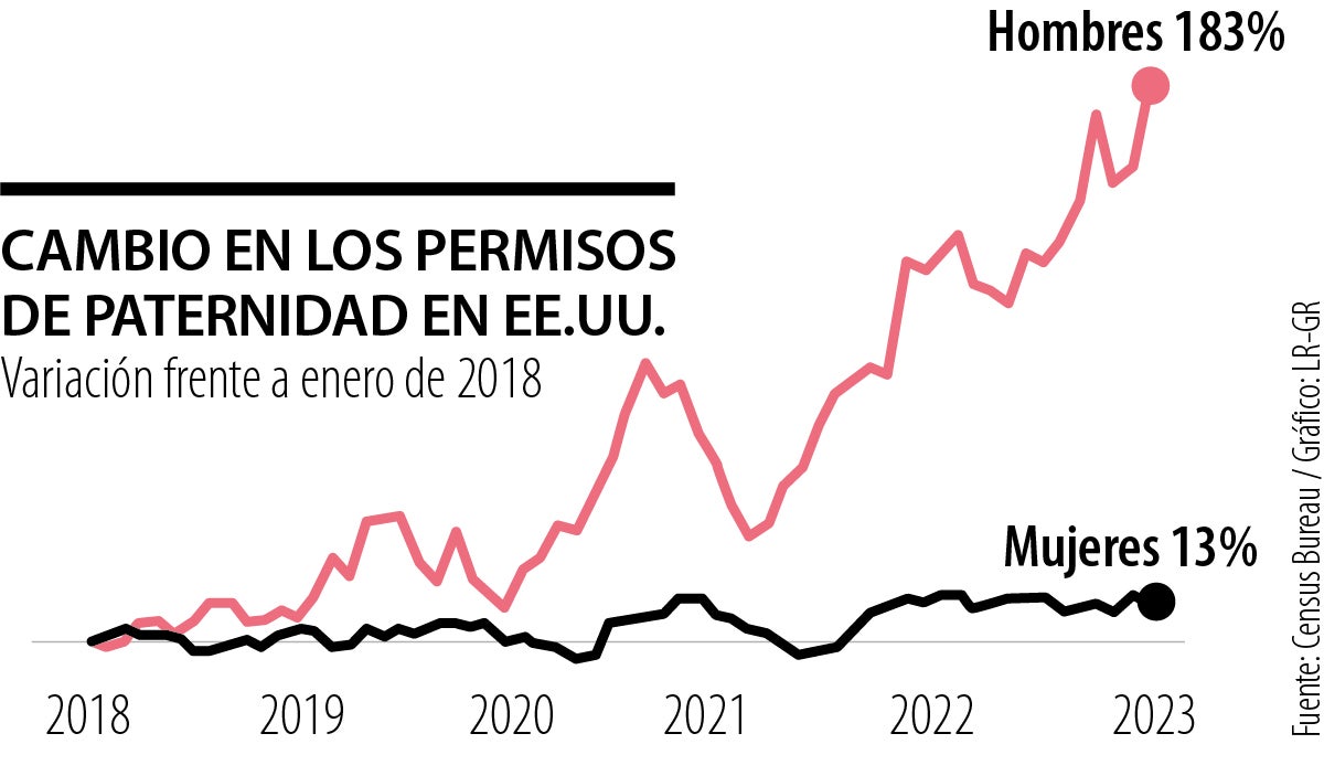 Según la oficina de estadísticas de Estados Unidos, Census Bureau, el número de hombres que han pedido el permiso de paternidad en el trabajo incrementó 183% en enero de 2023 frente al mismo mes de 2018. Si bien el aumento es considerable, las mujeres siguen siendo mayoría en número, ya que fueron 335.000 para dicho mes, frente a 76.500 hombres. (JV)