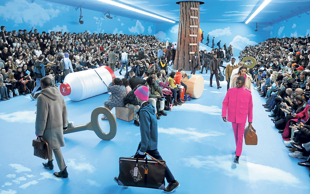 Virgil Abloh, director artístico de la firma Louis Vuitton, dio un toque al estilo ‘Alicia en el país de las Maravillas’ con la presentación de su colección otoño/invierno 2020 para la casa de moda durante la Semana de la Moda Masculina en París. Elementos en tamaño real como pinceles, hilos, agujas, carretes de hilos puestos en simulaciones de jardines y el mismo cielo, dieron un toque diferente al desfile.