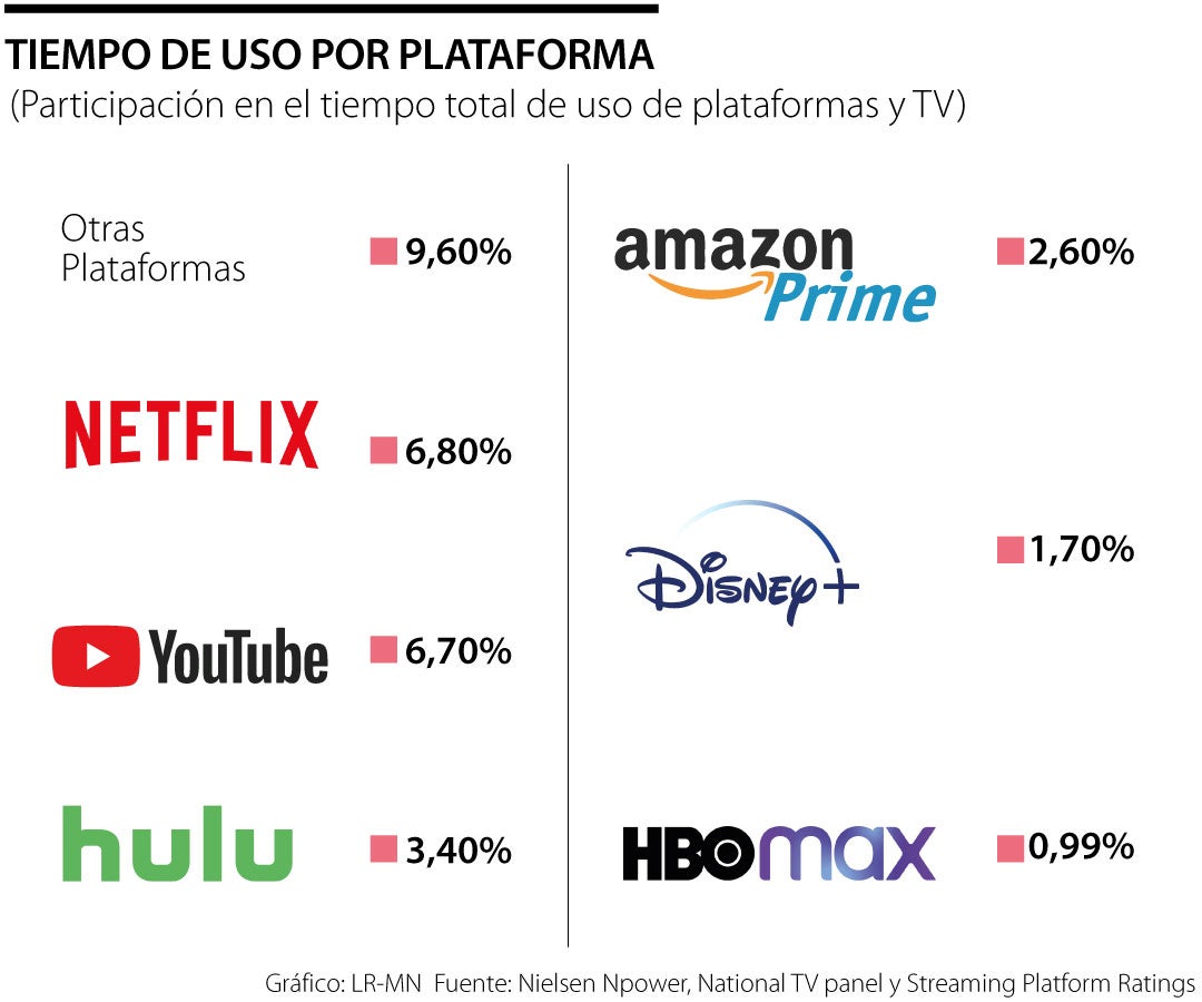 Nielsen presentó The Gauge, su estudio sobre televisión y streaming en EE.UU. Entre mayo de 2021 y mayo de 2022, el uso de streaming aumentó más de 21%, con lo que capturó 5,6 puntos de participación adicionales y representó casi 32% del tiempo total de TV en mayo de 2022, frente a 26% hace un año. Aunque Netflix sigue siendo la plataforma más usada, YouTube TV y Disney+ tuvieron el mayor crecimiento. (TA)