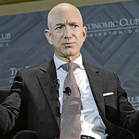 Jeff Bezos, founder and chief executive officer of Amazon.com Inc., speaks during an Economic Club of Washington discussion in Washington, D.C., U.S., on Thursday, Sept. 13, 2018. Bezos, the world's richest person, is launching a $2 billion fund called the Bezos Day One Fund to help homeless families and create a network of non-profit preschools in low-income communities. Photographer: Andrew Harrer/Bloomberg