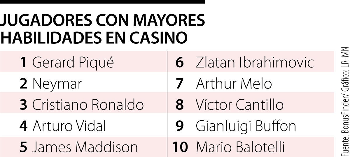 Gerard Piqué (1987), Neymar (1992) y Cristiano Ronaldo (1985) son los futbolistas con mejores habilidades para los juegos de casino, de acuerdo con un estudio de BonusFinder, agregador de ofertas y bonos de casinos presente en 15 países. Arturo Vidal (1987) y James Maddison (1996) completan el top 5. Víctor Cantillo (1993), jugador del Corinthians, es el único colombiano en el top 10. (TA)