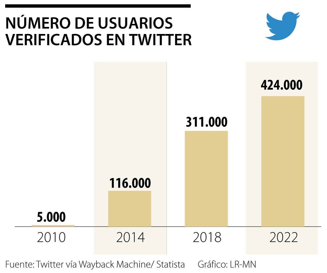 Elon Musk (1971) no se hará aún más rico por cobrar US$8 a cada usuario con cuenta verificada en Twitter. Al menos, no por ahora, pues en promedio esta red social tiene solo 424.000 usuarios con perfiles verificados, lo que representaría unos ingresos por US$3,39 millones. Si lo que busca Musk es más plata, debe subir entonces ese ínfimo 0,2% de sus casi 240 millones de usuarios activos que tienen verificada su cuenta. (vp)