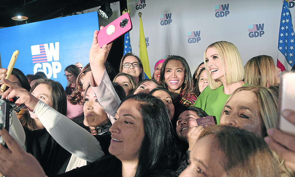 La mujer que le habla al oído al presidente Donald Trump (1946), quien a la vez es su hija, Ivanka Trump (1981), estuvo en Bogotá y se reunió con la vicepresidente Marta Lucía Ramírez (1954) y varias mujeres del gabinete, como la ministra de Cultura, Carmen Vásquez (1963), y la ministra de Energía, María Fernanda Suárez (1974), para hablar sobre estrategias de empoderamiento femenino. (MC). P4
