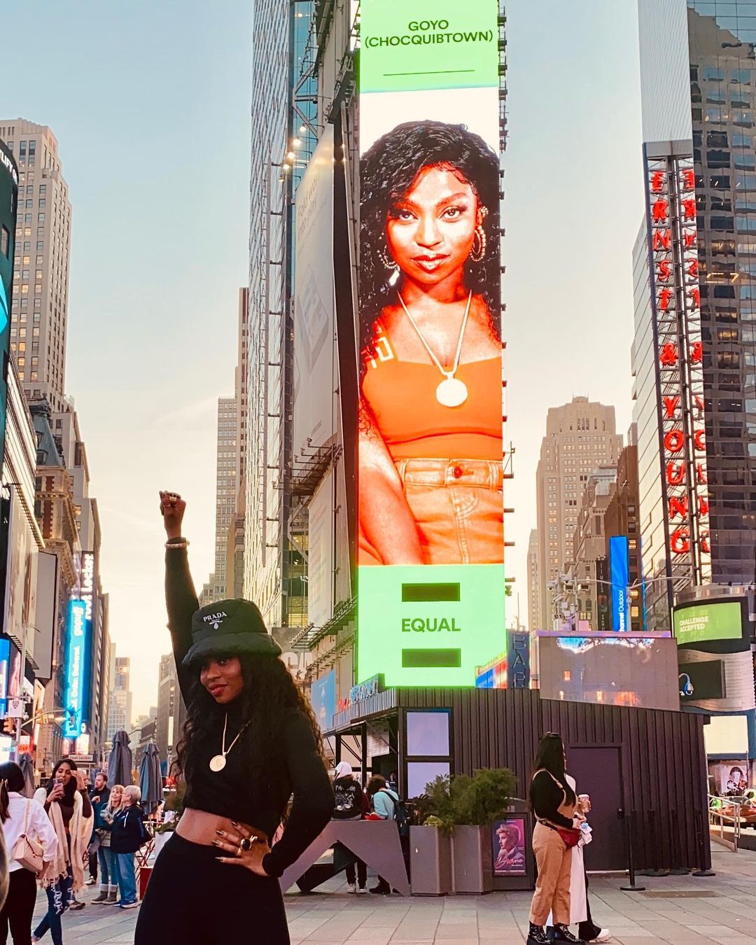 La cantante de la agrupación colombiana ChocQuibTown, Goyo, llegó a las pantallas gigantes de Times Square en la ‘Gran Manzana’. Lo hizo como la imagen del programa ‘Equal’ que creó Spotify para fomentar la igualdad de género en la industria de la música. La artista posó con su fotografía en la icónica calle de Nueva York y aseguró que el suceso es una “oportunidad para seguir inspirando” a todas las mujeres. (KP)