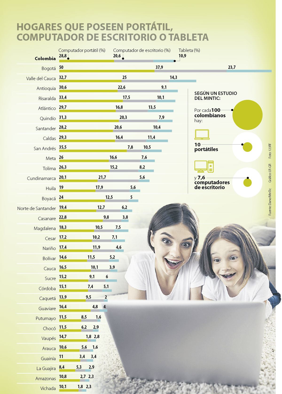 Los portátiles son lo reyes de los computadores en Colombia, ya que casi 30% de los hogares en el país tiene esta clase de equipos. La tendencia es más fuerte en Bogotá, donde el porcentaje llega a 50%.