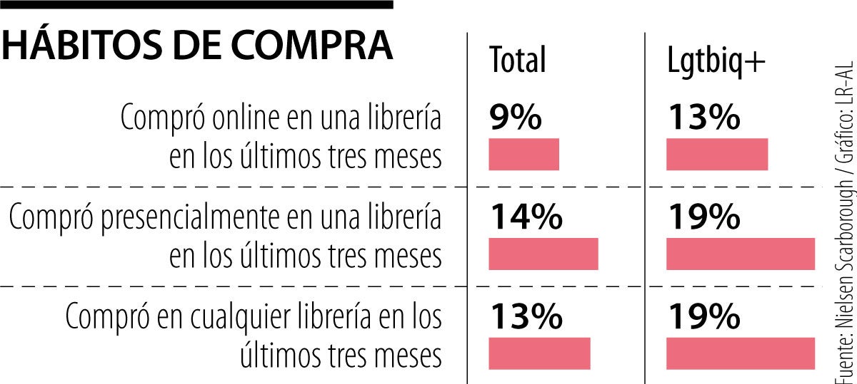 La comunidad Lgbtiq+ es uno de los grupos poblacionales que está reviviendo las librerías, de acuerdo con un estudio de Nielsen. Según la compañía, NPD Bookscan informó un alza de 740% en las ventas del género Lgbtiq+ en los últimos cinco años y Nielsen Scarborough señaló que los adultos de la comunidad tienen 43% más de probabilidades de haber comprado en una librería en los últimos tres meses. (TA)