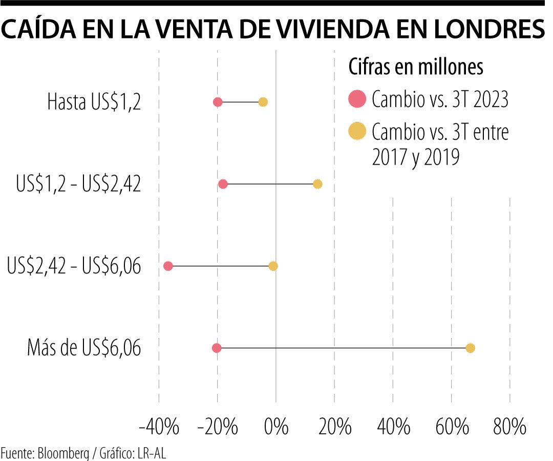 El sector inmobiliario de alta gama en Londres está bajo presión por un triple golpe de incertidumbre económica, tasas más altas y agitación política. Por ello, los cierres de negocios de este tipo cayeron casi una cuarta parte en septiembre respecto al mismo mes del año anterior, según datos de LonRes recopilados por Bloomberg. Esto provocó que el precio medio de venta cayera 3,1% durante el período. (TA)