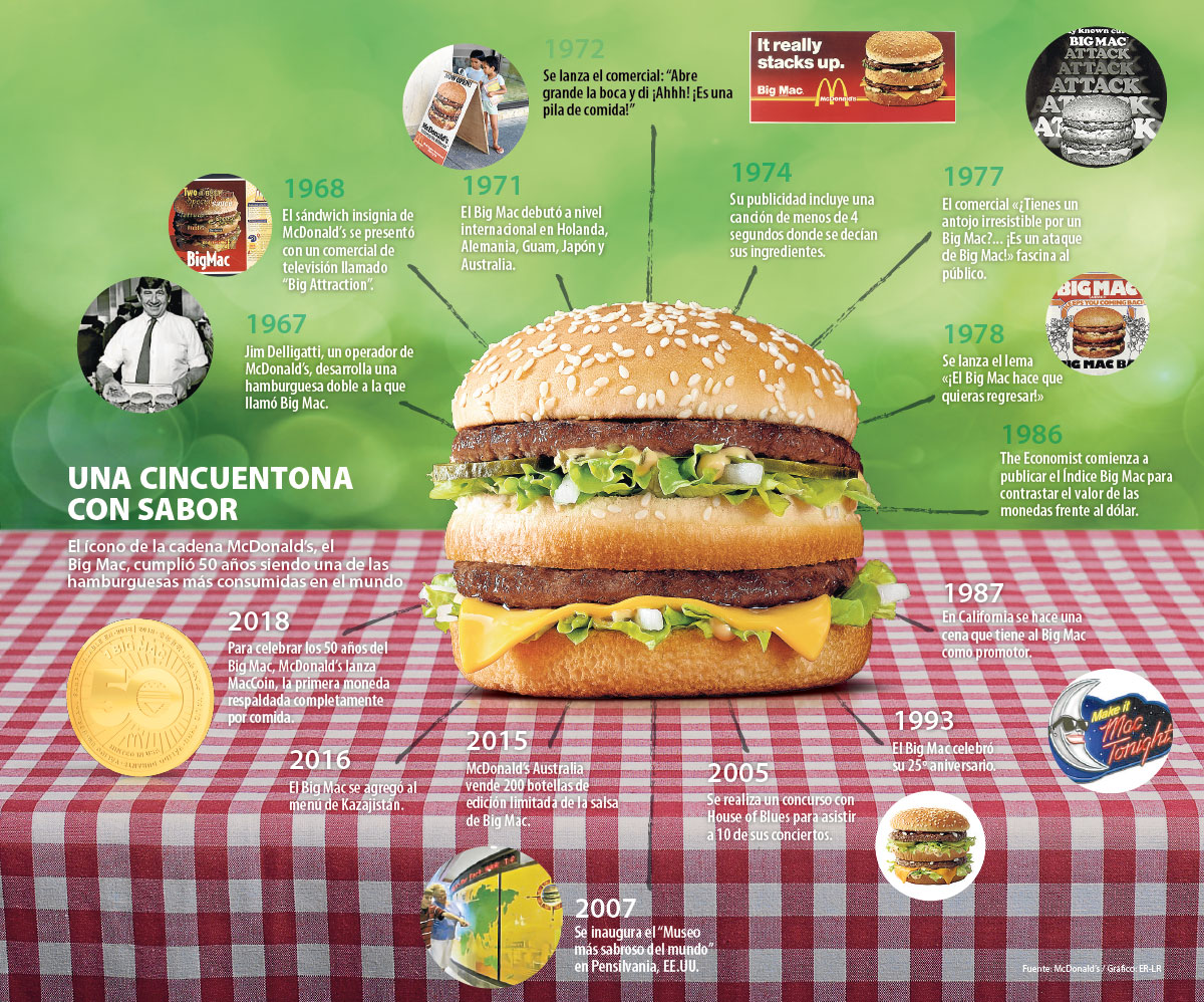 El ícono de la cadena McDonald's, el Big Mac, cumplió 50 años siendo una de las hamburguesas más consumidas en el mundo.