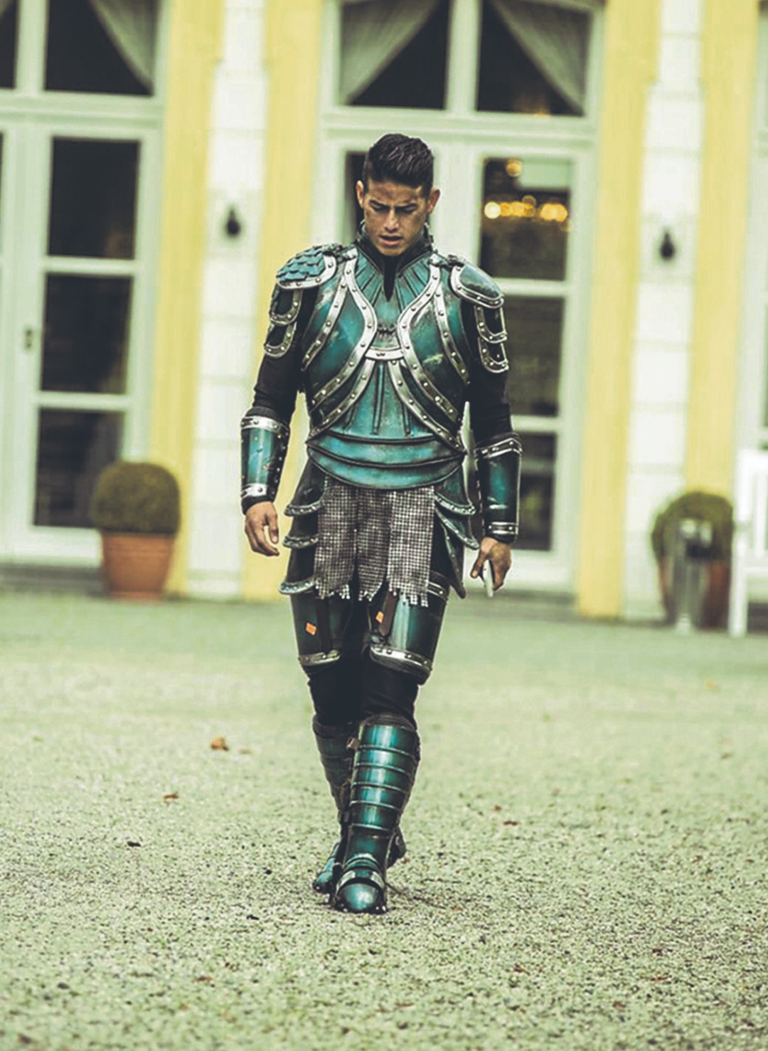 “James: Más fuerte que nunca”. Esa frase es lo único que se sabe de esta imagen que obtuvo Colprensa del futbolista colombiano, quien juega en el Bayern Múnich. La foto de James Rodríguez, vestido como un guerrero medioeval, ha generado especulaciones en redes sociales: desde que será el protagonista de una película hasta que es la estrategia de un nuevo producto. (VP)