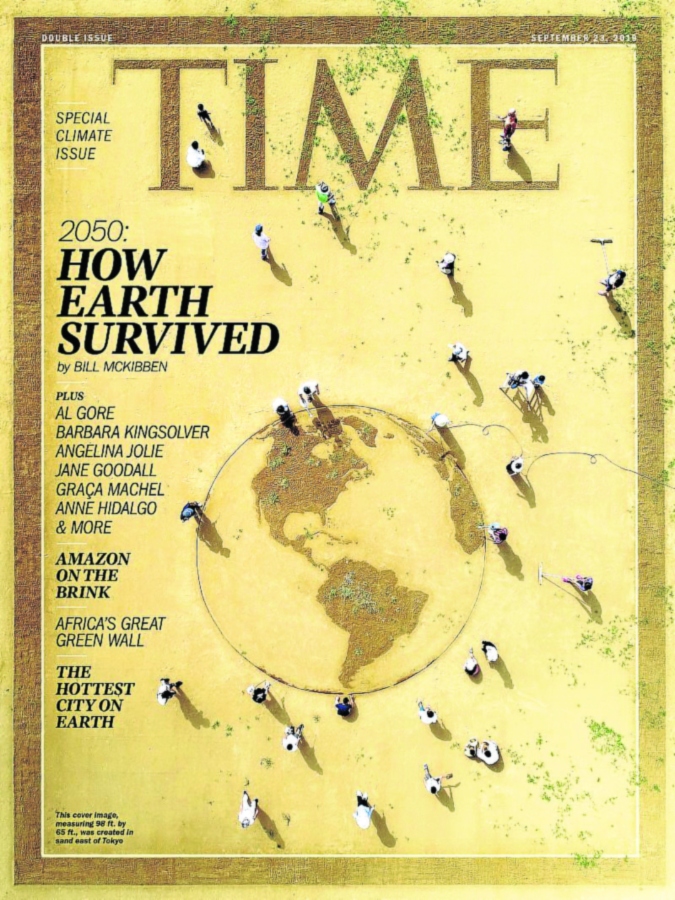 El escultor de arena japonés Toshihiko Hosaka (1974) fue el encargado de hacer toda una obra de arte para lograr la fotografía de la portada de la revista Time en honor al cambio climático. Hace 30 años la publicación había hecho un ejercicio parecido. La portada de ahora tuvo una producción de 14 días, tiempo que se tardó en recrear la primera página de 30 metros en arena para luego ser fotografiada por un dron. (MR)