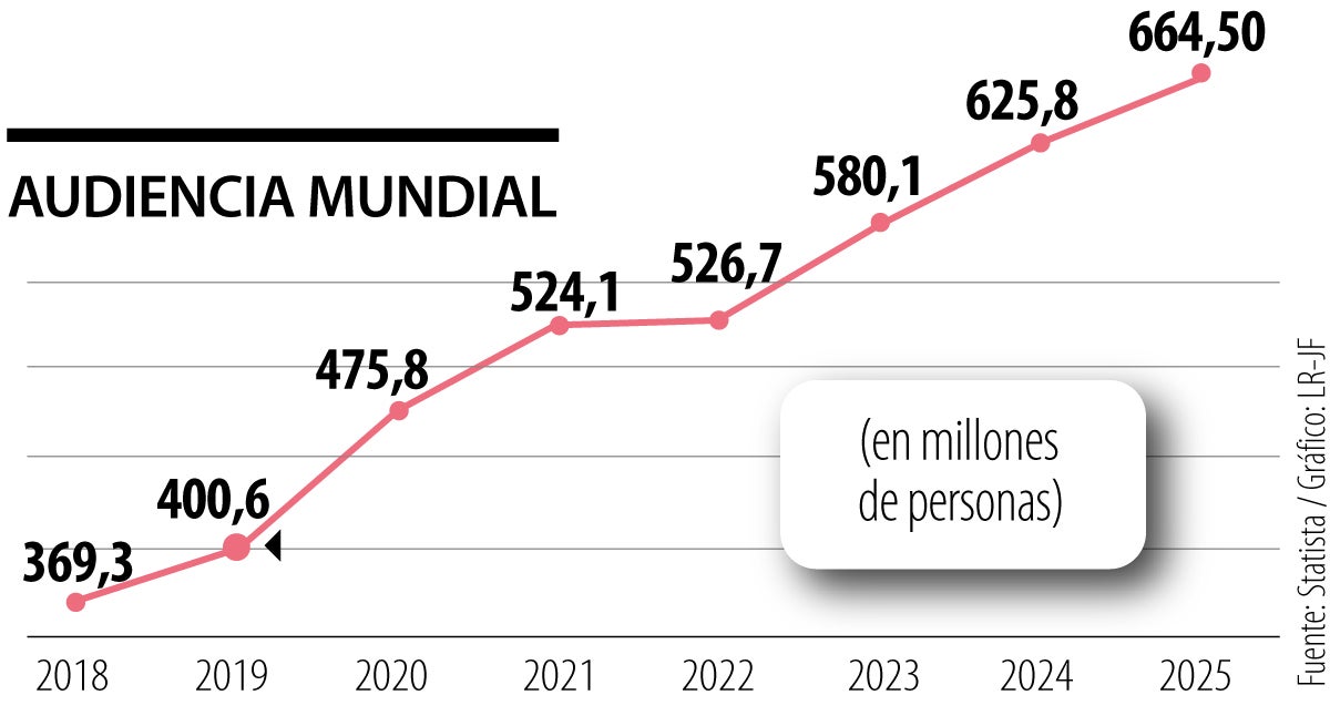 La industria de los eSports ha crecido de forma acelerada durante la última década. Según datos de SportsLens.com, se espera que la audiencia mundial llegue a cerca de 665 millones de personas en 2025. Estos juegos registraron 210 millones de nuevos fanáticos en los últimos cinco años, con un número total que aumentó de 369 millones en 2018 a más de 580 millones en 2023, de acuerdo con Statista. (TA)