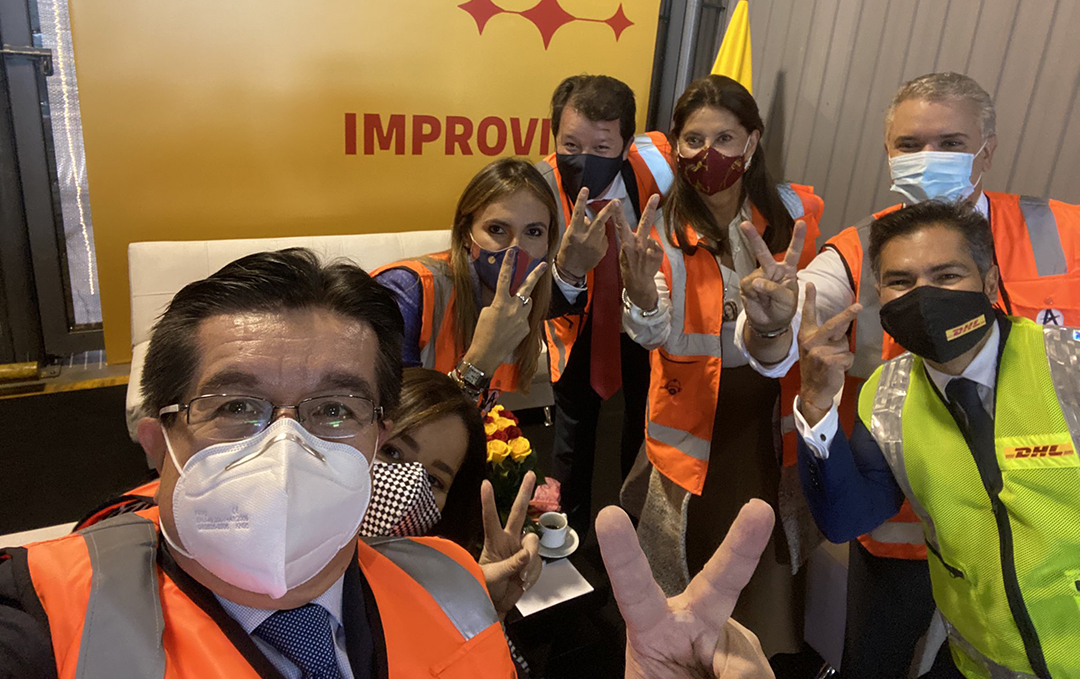 En la tarde del lunes, el presidente, Iván Duque; el ministro de Salud, Fernando Ruiz; la vicepresidenta, Marta Lucía Ramírez, y otros funcionarios del Gobierno recibieron el primer lote de vacunas contra el covid-19. Se trata de la primera entrega de la farmacéutica Pfizer, que en total le entregará al país 1,65 millones de dosis. La primera vacuna se le aplicaría a alguien del personal de salud. P3. (HM)