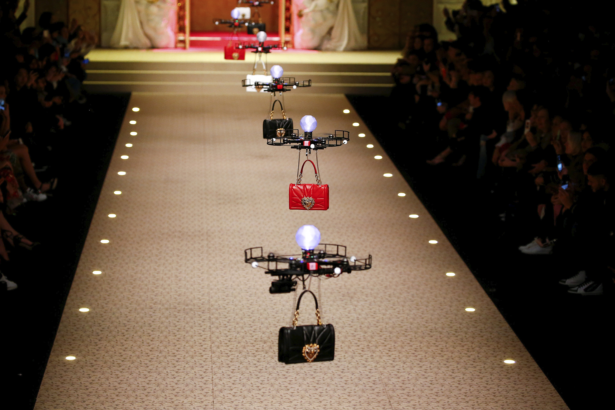 Cuando le hablan de un dron, lo que usted imagina es una máquina usada como cámara, como espía, como arma o como juguete; pero posiblemente no se lo imagine como un modelo. Pues bien, en su más reciente desfile en Milán, en el que mostró su colección otoño/invierno, Dolce & Gabbana usó varios de estos robots, en vez de mujeres, para que volaran con su nueva propuesta