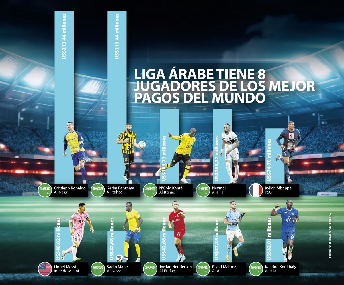 Liga Árabe tiene 8 jugadores de los mejor pagados del mundo