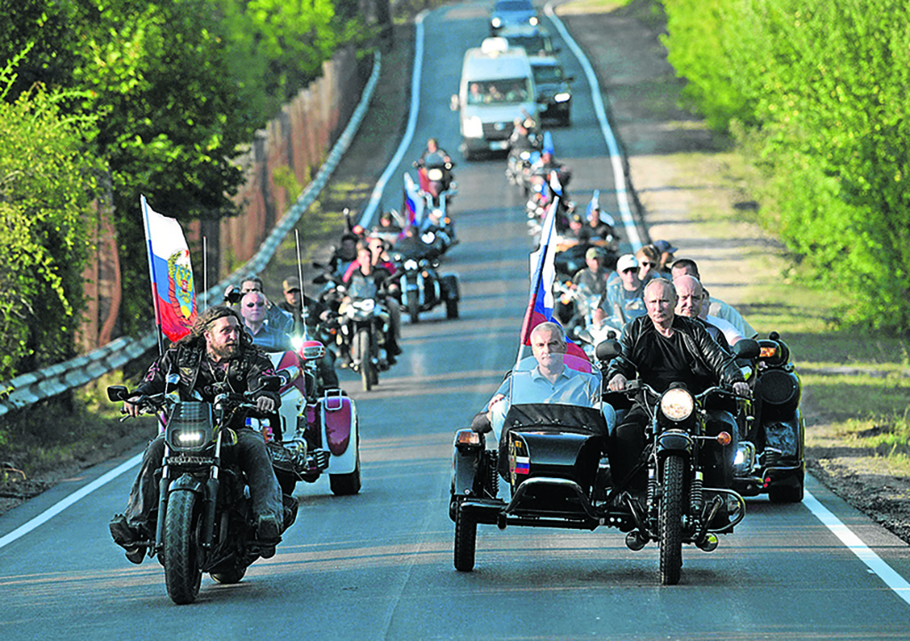 Generalmente, los jefes de estado llegan a sus compromisos en carros blindados. Ese no fue el caso del presidente ruso, Vladimir Putin (1952), quien manejó una moto Ural para llegar al show La Sombra de Babel en Crimea. Putin llegó acompañado por el club de motociclistas Los lobos nocturnos junto con el jefe de la península, Serguéi Axiónov (1972), y el alcalde de Sebastopol, Mijaíl Rasvoszháyev. (TA)