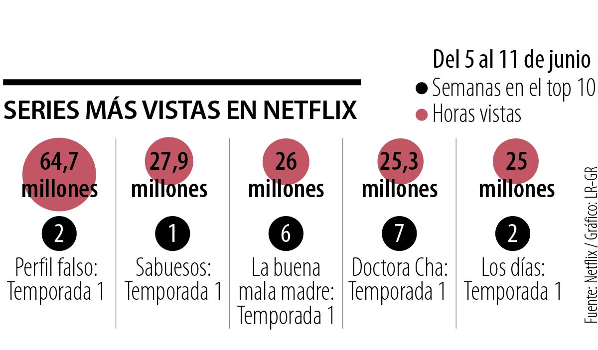 Este año, la serie colombiana ‘Pálpito’ causó furor en Netflix y se mantuvo más de tres semanas en el top 10 de las series en habla no inglesa más vistas y ahora le hizo el relevo a ‘Perfil falso’ que, con más de 64,7 millones de vistas entre el 5 y el 11 de junio, ha logrado ubicarse como la más vista durante dos semanas seguidas. La producción fue creada por el guionista chileno Pablo Illanes (1973). (SS)