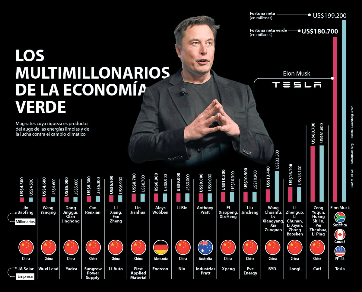 Magnates cuya riqueza es producto del auge de las energías limpias y de la lucha contra el cambio climático.