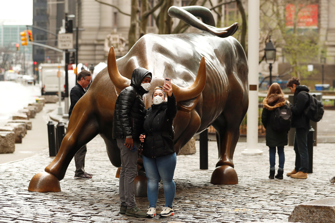 La OMS lo declaró como pandemia y las cifras lo certifican: el mundo está bajo el acecho del Covid-19 infectando a más 180.000 personas en 143 países y cobrando la vida de más de 7.100 ciudadanos. Esto parece no ser suficiente para algunas personas. Así lo demuestra esta imagen donde se ven a turistas tomándose fotos al frente del icónico toro de Wall Street. Claro está, con tapabocas, por si las moscas. (VP)