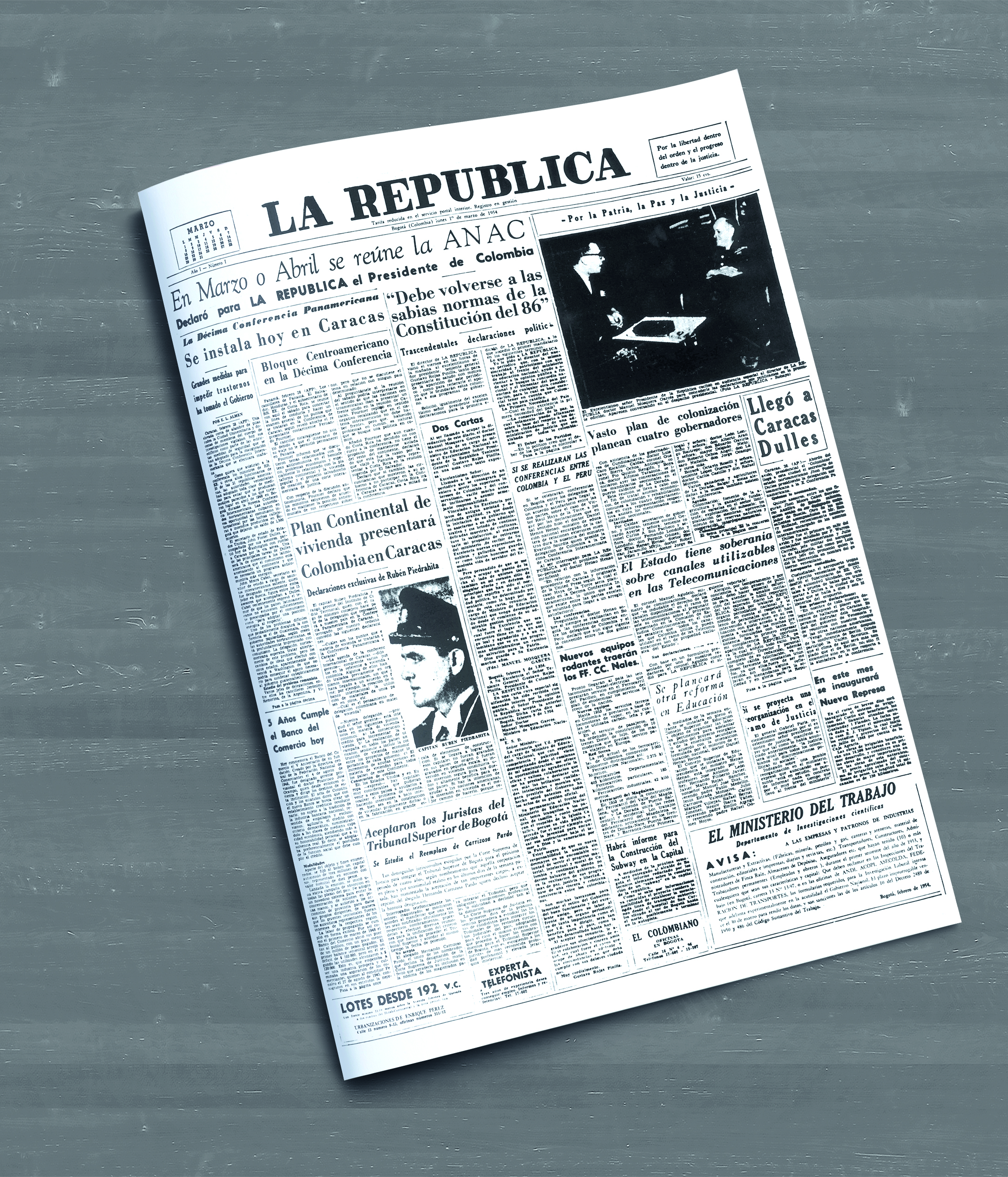 El lunes se conocieron los consorcios interesados en construir el metro de Bogotá, una promesa que lleva 65 años de historia, como lo muestra la primera portada de La República, publicada el primero de marzo de 1954: “Habrá informe sobre la construcción del Subway en la capital”, decía la nota. Esta señalaba que había un estudio de una firma alemana para estructurar un metro subterráneo.