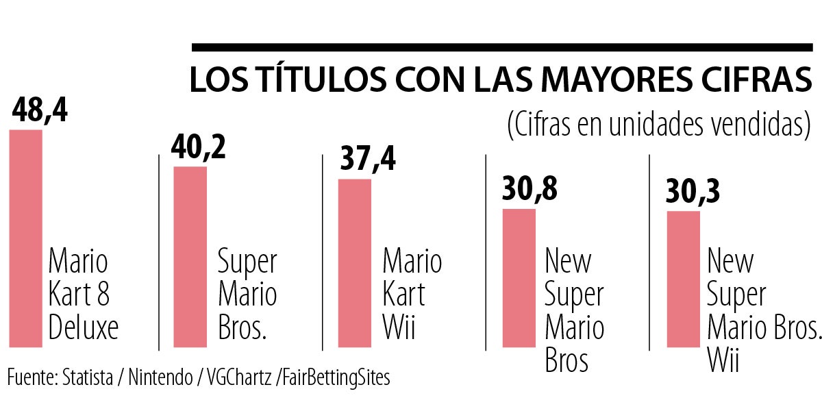 Casi 40 años después de su lanzamiento como juego de arcade, Super Mario aún genera entusiasmo entre millones de gamers en todo el mundo. Según Guinness World Records, el personaje de videojuego más vendido de todos los tiempos registra ventas de 650 millones de copias. Mario Kart 8 Deluxe ocupa la primera posición en cuanto a ventas de títulos y juegos de Super Mario. (ta)