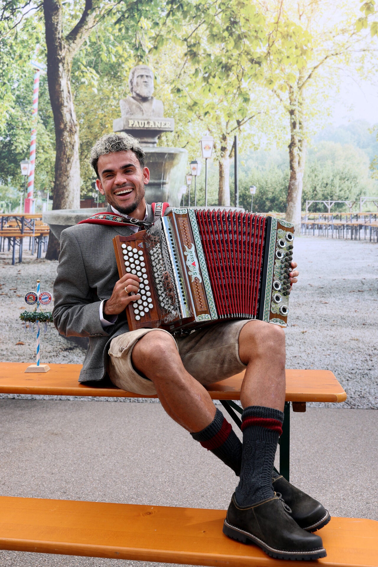 Se puso la tradicional vestimenta: los calcetines Loferl, los pantalones cortos de cuero Lederhosen y los zapatos Haferl, incluso hasta posó con un acordeón alemán. Lucho Díaz (1997) está listo para celebrar su primer Oktoberfest con su equipo Bayern de Múnich, pero en su corazón sigue sonando la fiesta colombiana y el acordeón guajiro. Fue por eso que el club no solo tomó la tradicional foto del equipo brindando con cervezas, sino que también lo hizo posar con un instrumento musical que no le es para nada ajeno. (VPD)