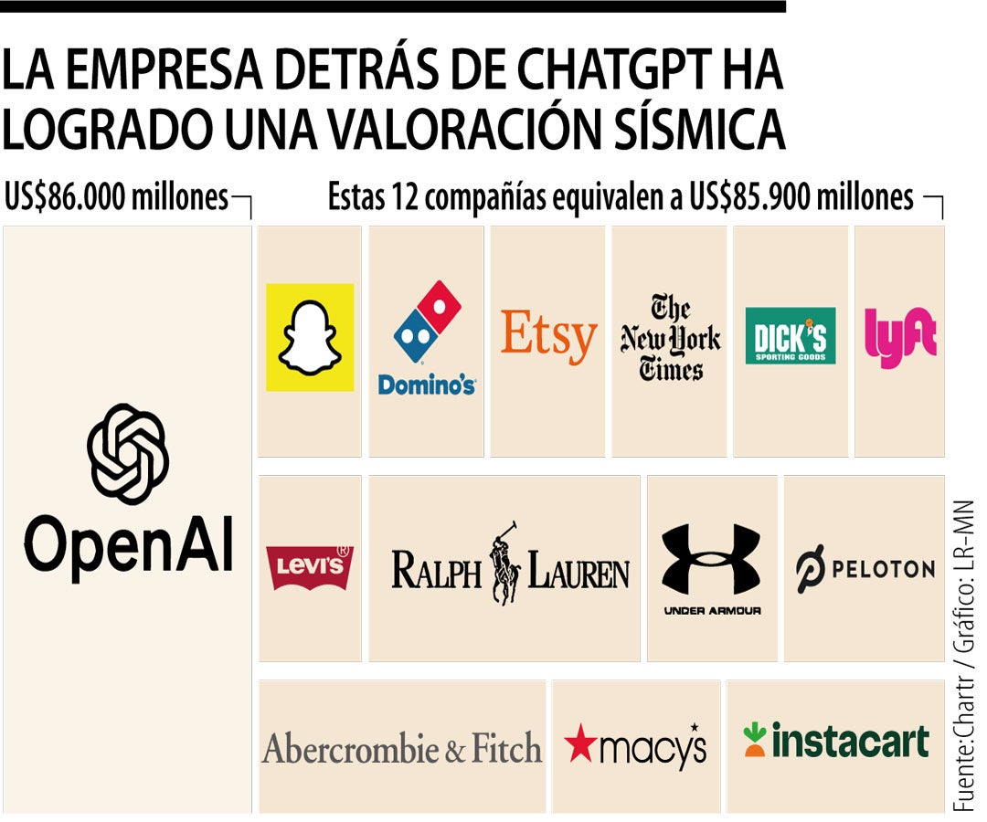 OpenAI, la empresa detrás de la creación de ChatGPT, se está convirtiendo en una mina de oro. La compañía está en conversaciones para vender sus acciones por una valoración de US$86.00 millones. De acuerdo con The Journal, la cifra podría subir hasta los US$90.000 millones. Esto pondría a OpenAI entre las startups tecnológicas más valiosas del mundo, solo detrás de ByteDance y SpaceX. (TA)