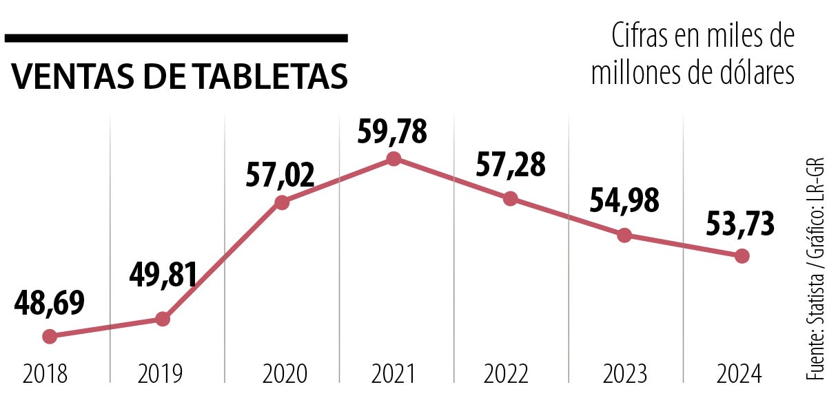 El gasto mundial en todos los dispositivos tecnológicos ha bajado US$122.000 millones en los últimos dos años, hasta los US$685.000 millones esperados en 2023. Los smartphones, los portátiles y los computadores de escritorio se recuperarán lentamente este año, pero el segmento de tabletas sigue rezagado. Se espera que las ventas vuelvan a caer, esta vez 4%, y que la tendencia se mantenga en 2024. (TA)