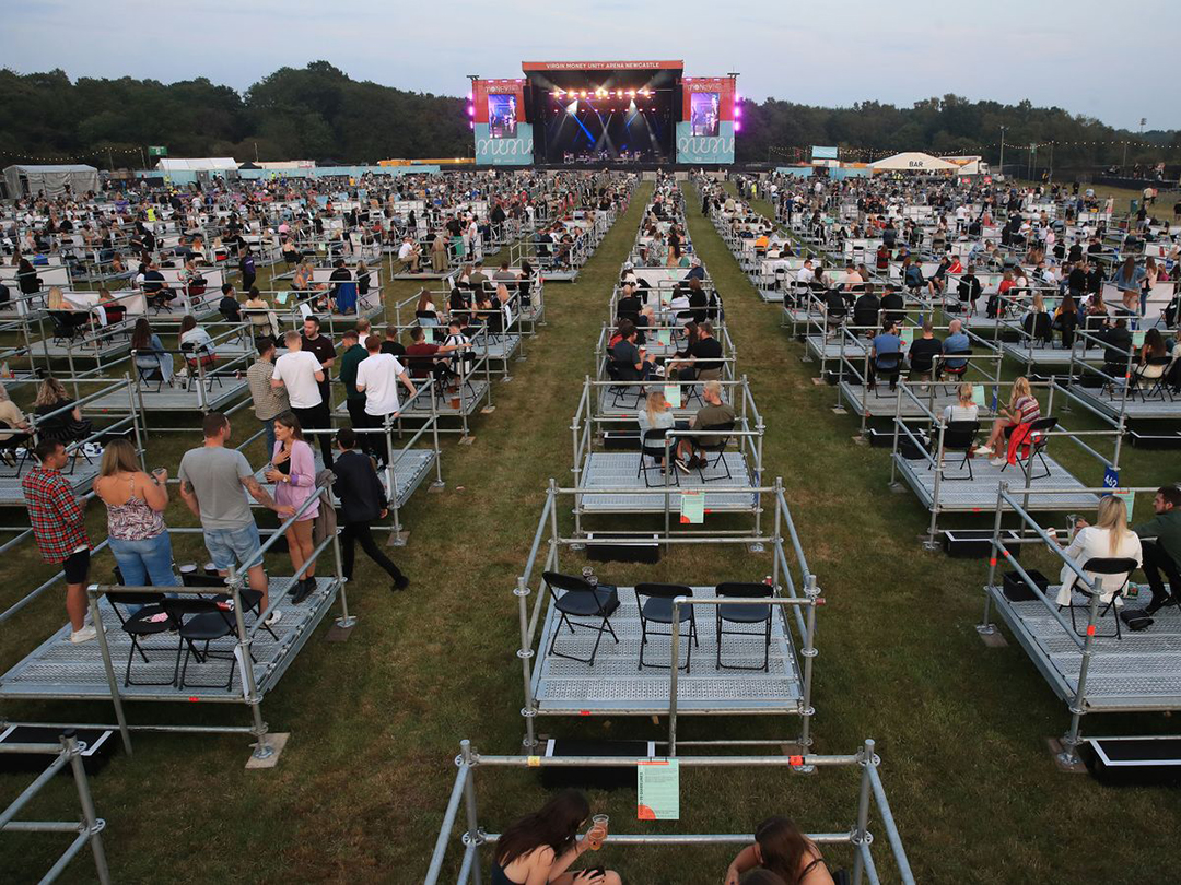 El Virgin Money Unity Arena, en Gosforth Park, Newcastle fue el escenario para llevar a cabo el primer concierto que guardó la sana distancia necesaria en estos tiempos de pandemia. El artista fue Sam Fender (1994) y se contó con una asistencia de 2.500 personas, quienes estaban organizadas en grupos de cinco con sus propias plataformas de visualización, al final los asistentes salieron satisfechos. (MR)