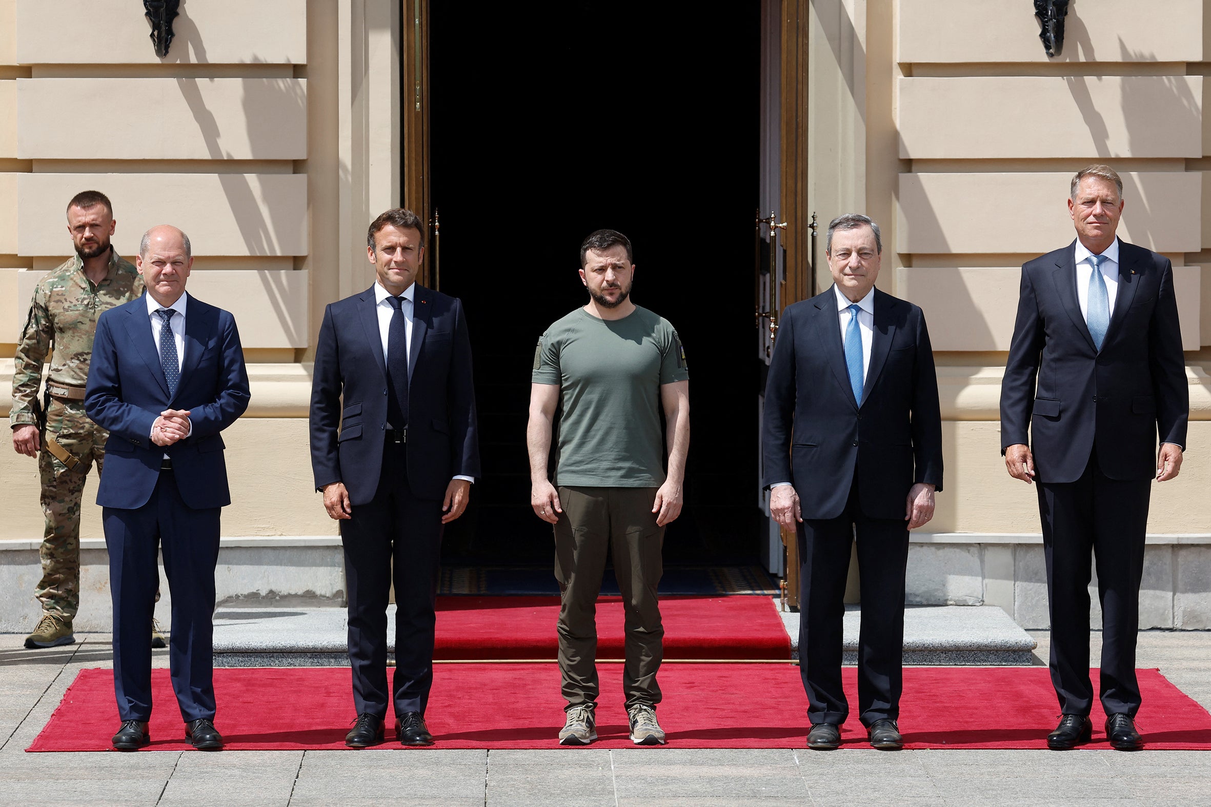 El canciller alemán, Olaf Scholz (1958); el presidente francés, Emmanuel Macron (1977); el primer ministro italiano, Mario Draghi (1947); y el rumano, Klaus Iohannis (1959), se reunieron en Kiev con el presidente, Volodímir Zelenski (1978), a quien dieron el respaldo para otorgar a Ucrania el estatus de candidato a la Unión Europea. Zelenski les instó a imponer sanciones más duras a Rusia. P8 (TA)