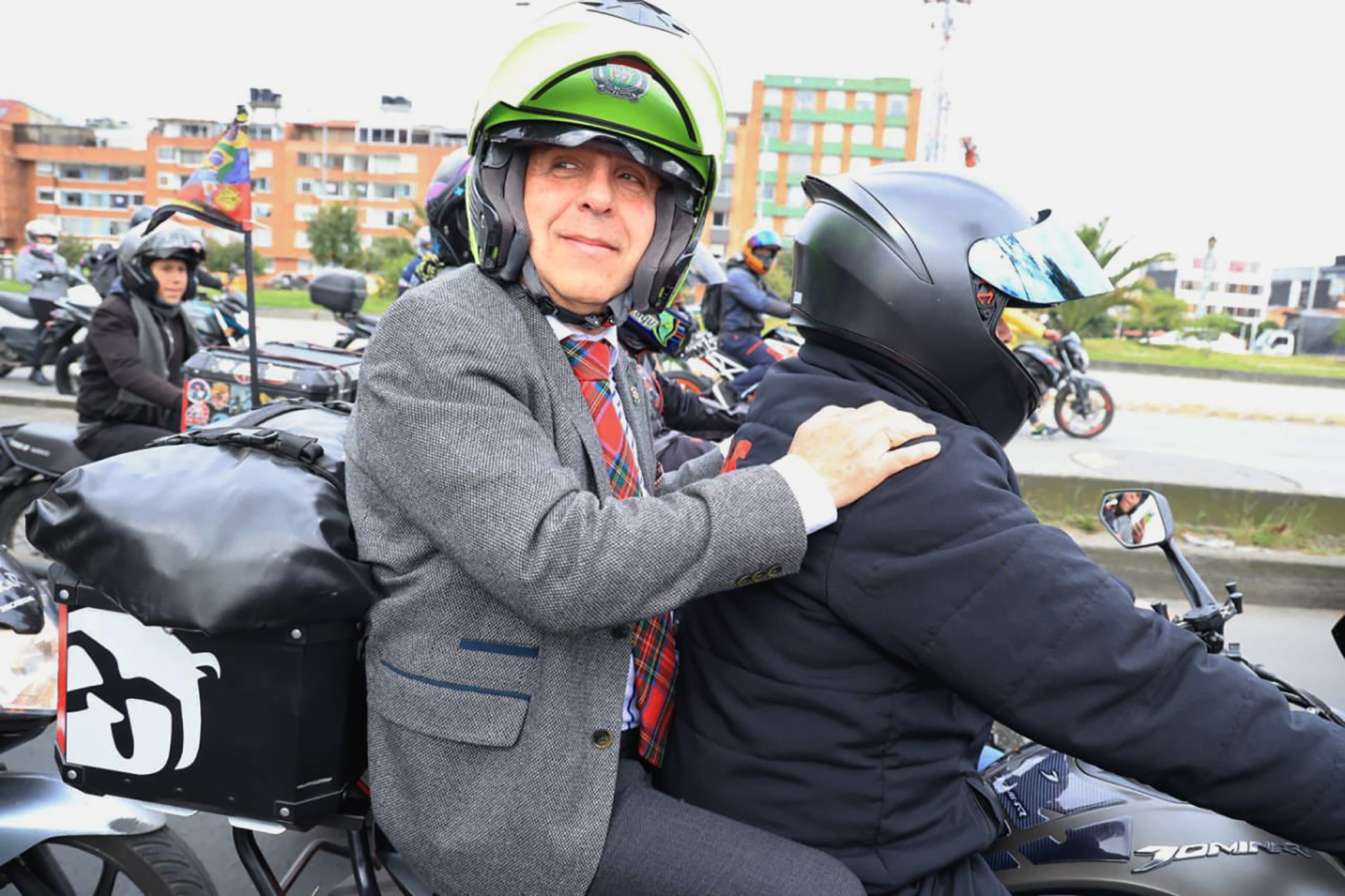 Durante la jornada de protestas de los motociclistas del miércoles, los gremios del sector se reunieron con el ministro de Transporte, Guillermo Reyes (1965); encuentro en el que se tomó la decisión de firmar el Pacto para Salvar las Vidas el próximo 25 de octubre. Tras la reunión, el ministro no solo tuiteó sobre este acuerdo, sino que publicó una foto subido en una moto como parrillero.