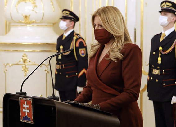 La presidenta de Eslovaquia, Zuzana Čaputová (1973) no ha perdido el glamour desde que ha tenido que empezar a utilizar tapabocas para asistir a eventos oficiales. Estos, contrario a lo que ocurre en otros países europeos, son obligatorios en público. Por ello, la mandataria ha decidido usar siempre uno totalmente combinado con su vestimenta, como ocurrió en este evento del sábado pasado. (NC)