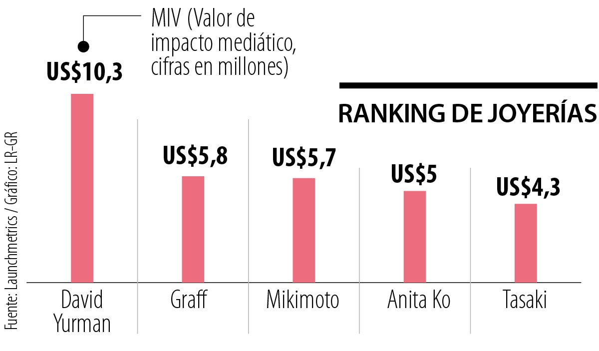 De los Globos de Oro a los premios Oscar, la temporada de alfombras rojas se lleva cada año todas las miradas. Para las marcas de joyería de alta gama, esta es una vitrina fundamental para llegar a una audiencia global. Por eso, la consultora Launchmetrics presentó su ranking de impacto mediático, en el que muestra que la joyería líder es David Yurman, seguida por Graff, Mikimoto, Anita Ko y Tasaki. (TA)