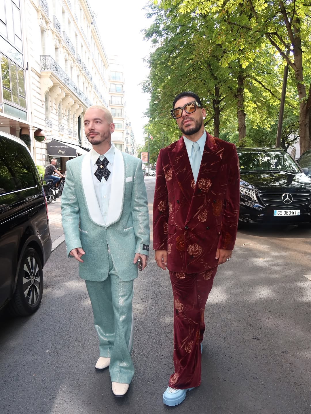 En el marco del París Fashion Week, el diseñador Mike Amiri (1976) debutó su colección de primavera verano 2026, en la que invitó a varias figuras latinoamericanas, entre ellas resaltan los dos cantantes colombianos de música urbana, Ryan Castro (1994) y J Balvin (1985), quienes brillaron en el desfile luciendo un traje vinotinto y uno verde aguamarina, respectivamente. (KMA)