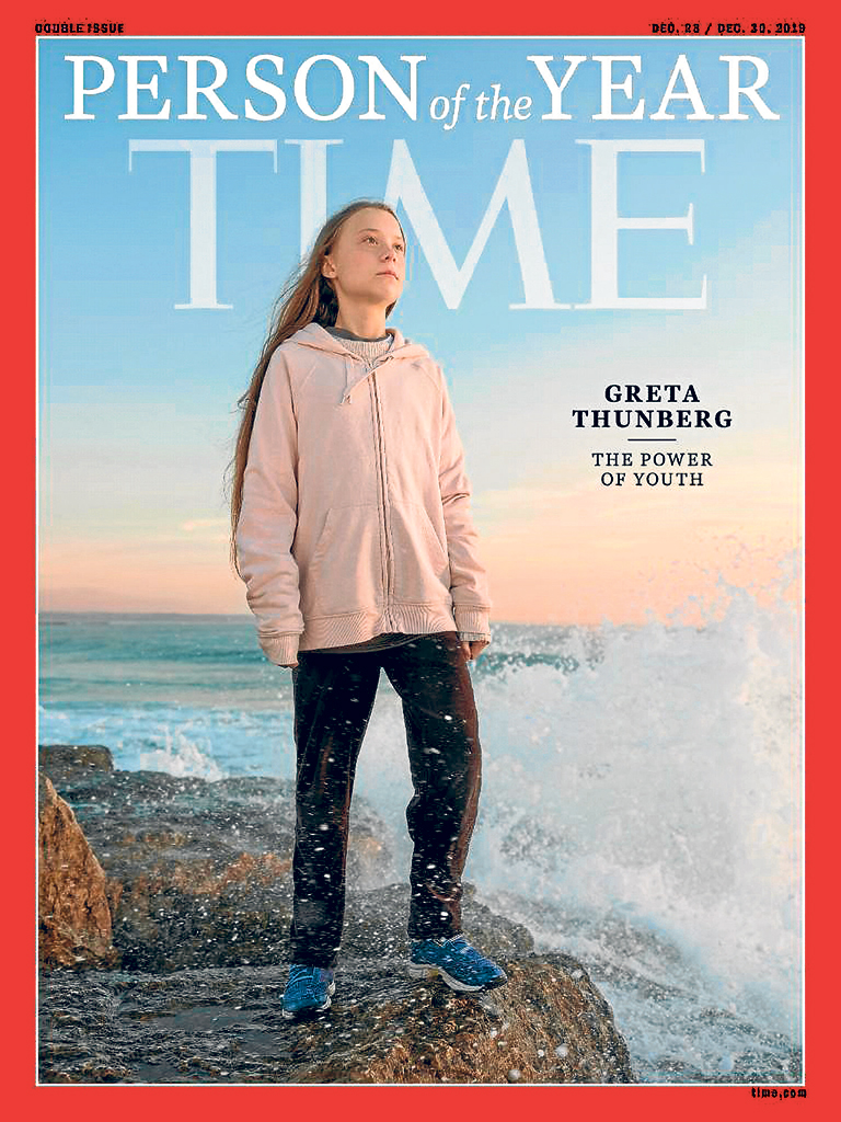 Aclamada por muchos y criticada por otros, la joven activista ambiental de 16 años, Greta Thunberg (2003) fue elegida por la Revista Time como el personaje del año. La publicación tituló la fotografía con la frase “el poder de la juventud” pues lideró la manifestación más grande en favor del clima en septiembre de este año. Ayer, en su intervención en la COP25 en España, dijo que hay esperanza porque las personas “empezaron a despertar”. P14