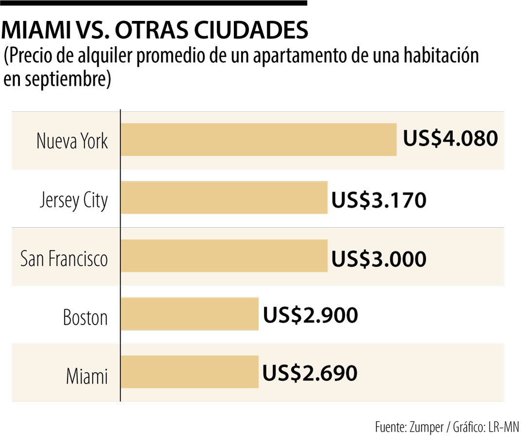 El mercado de alquileres de lujo en Miami registra una desaceleración significativa según The Wall Street Journal, un descenso más rápido frente a otras ciudades de EE.UU. De acuerdo con datos de Zumper, una renta promedio en Miami para un apartamento de una habitación era US$2.690 al mes en septiembre, lo que representa una caída de 1,47% frente al mes anterior. (TA)