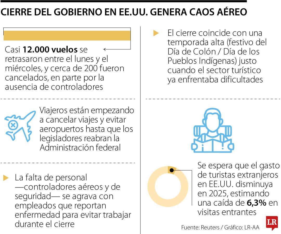 El lunes y el martes hubo casi 10.000 retrasos de vuelos en total, muchos de los cuales se debieron a que la FAA redujo la frecuencia de los vuelos