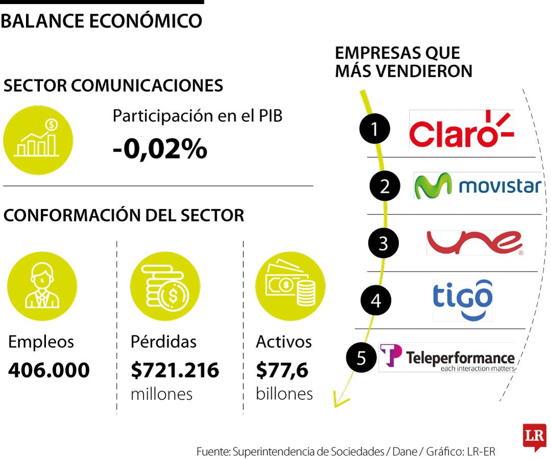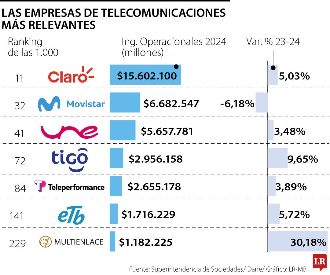 Claro fue la compañía que encabezó el listado con $15,6 billones, seguido de Movistar con $6,6 billones y UNE EPM, con $5,6 billones