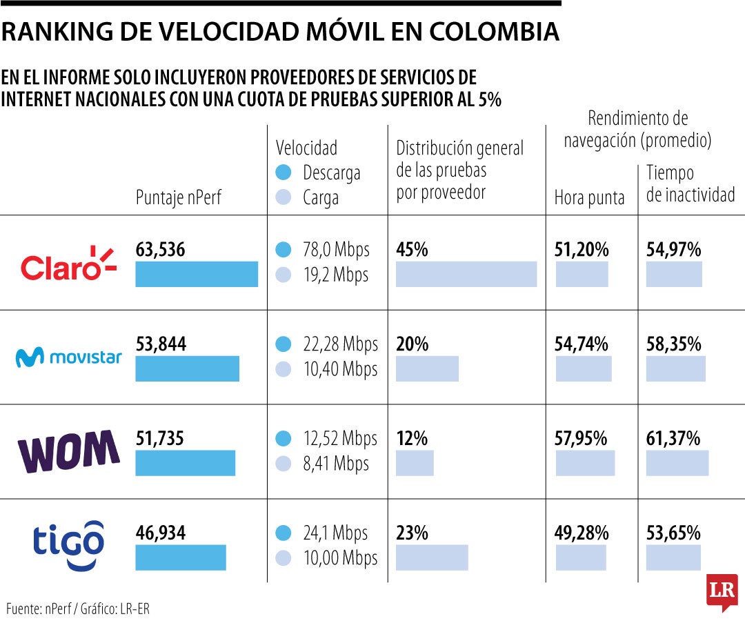 En el informe solo incluyeron proveedores de servicios de Internet nacionales con una cuota de pruebas superior al 5 %, además de pruebas durante las horas punta (6:00 p.m.-11:00 p.m.)