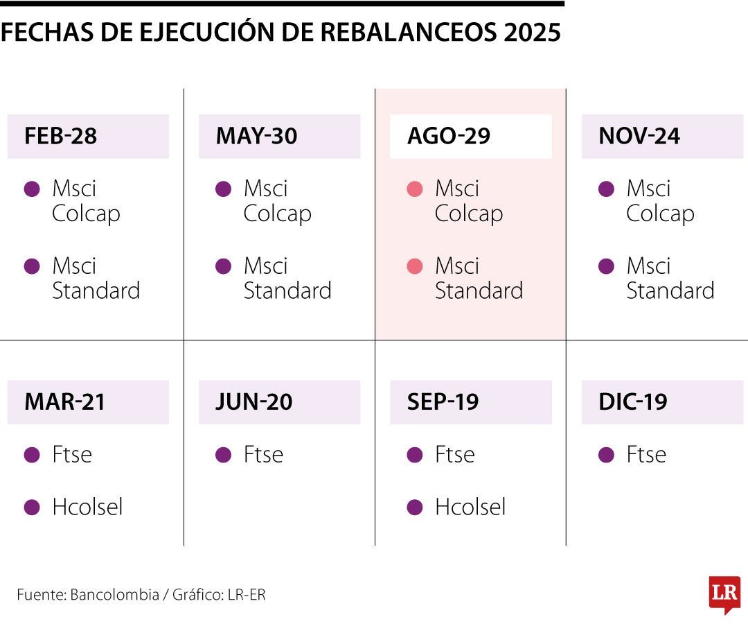 A finales de agosto se rebalancearán el Msci Colcap, el Msci Standard; quedan tres adicionales en septiembre, noviembre y diciembre