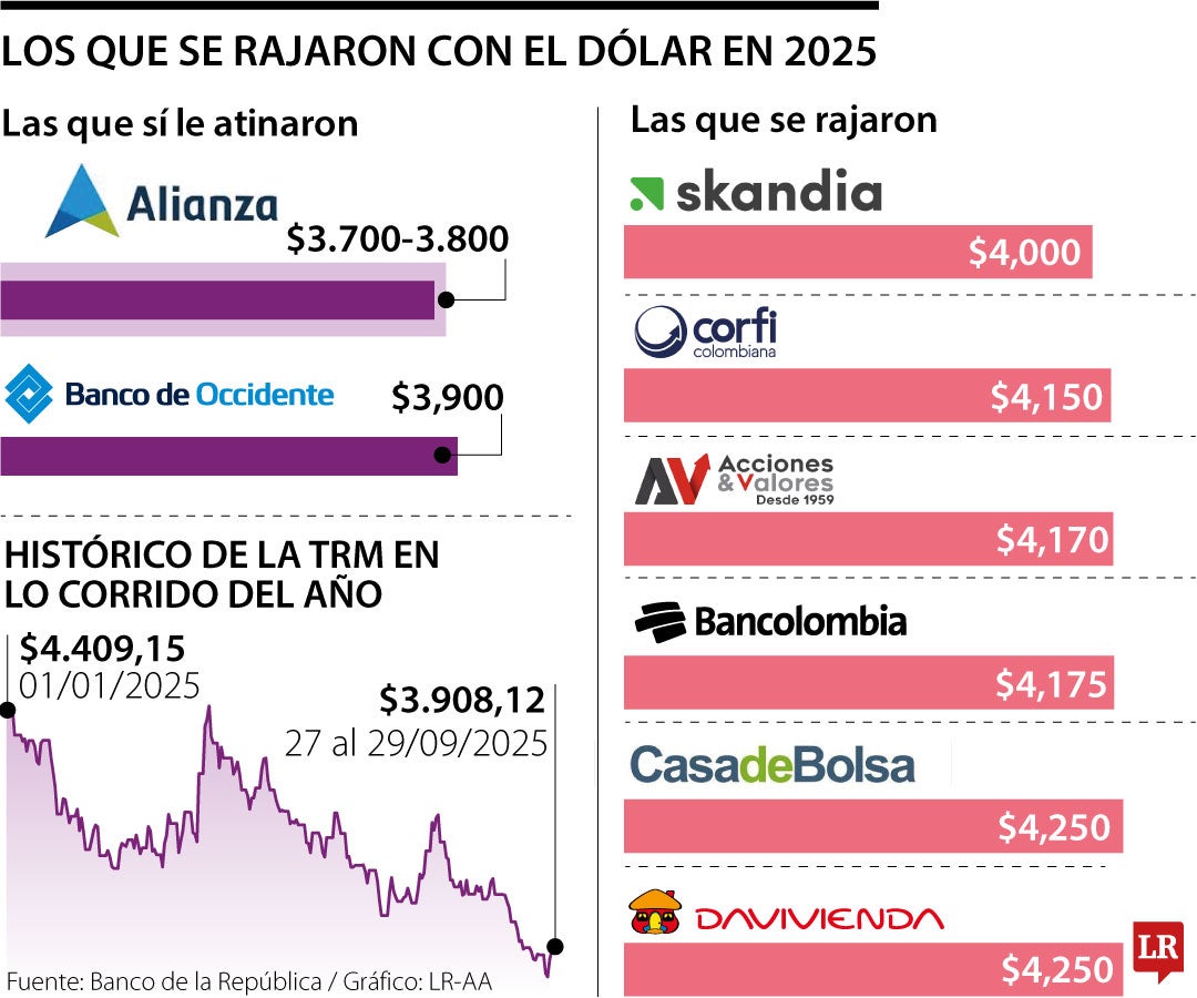 Corficolombiana fue la entidad que tuvo la proyección más baja comparada con otras, planteando un dólar en promedio a $4.400