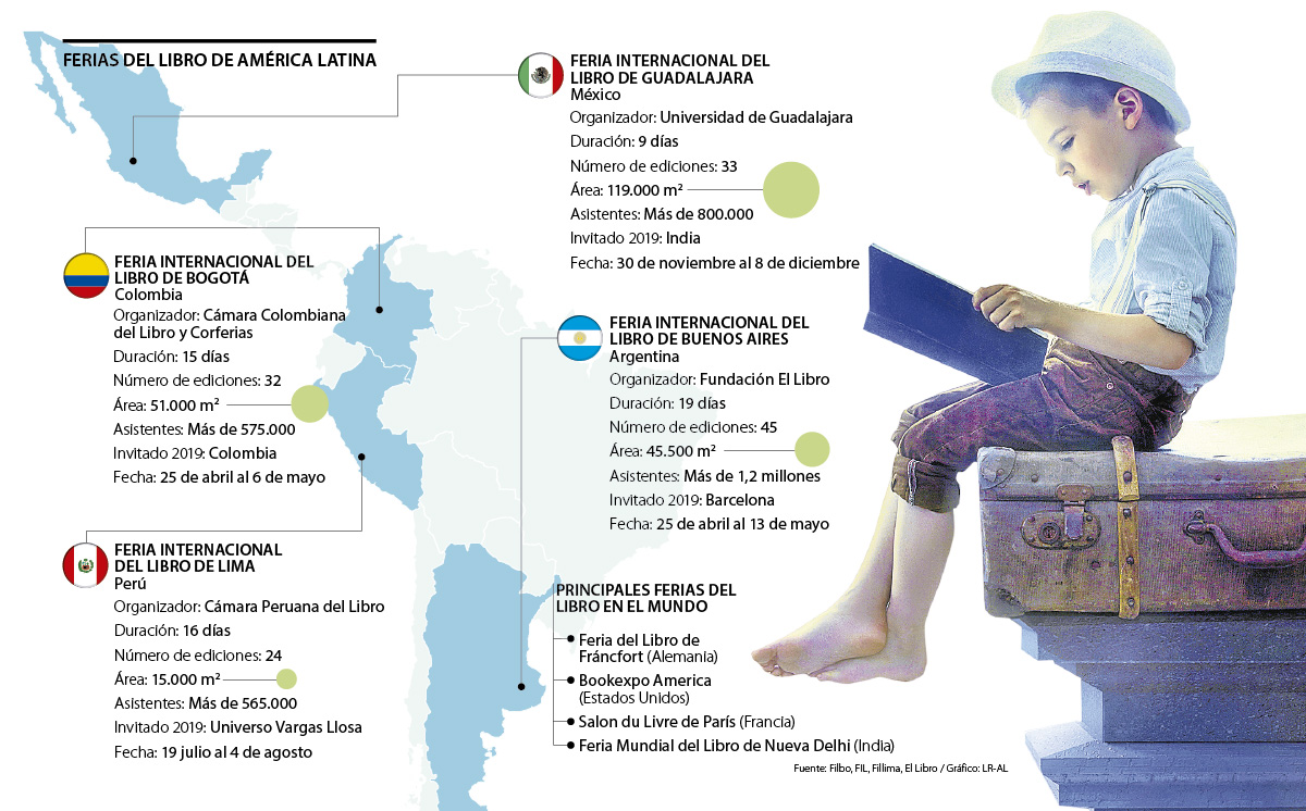Cada edición de estos eventos resalta la literatura de un país o ciudad en particular. La Feria de Guadalajara eligió a India por ser una ventana cultural, mientras que en el evento de Buenos Aires se escogió a Barcelona por ser una “una auténtica Ciudad Literaria”, según explican en su página web. En el caso de la Feria de Lima de este año, no tendrá una nación como invitada, sino que se centrará en el Universo Vargas Llosa.