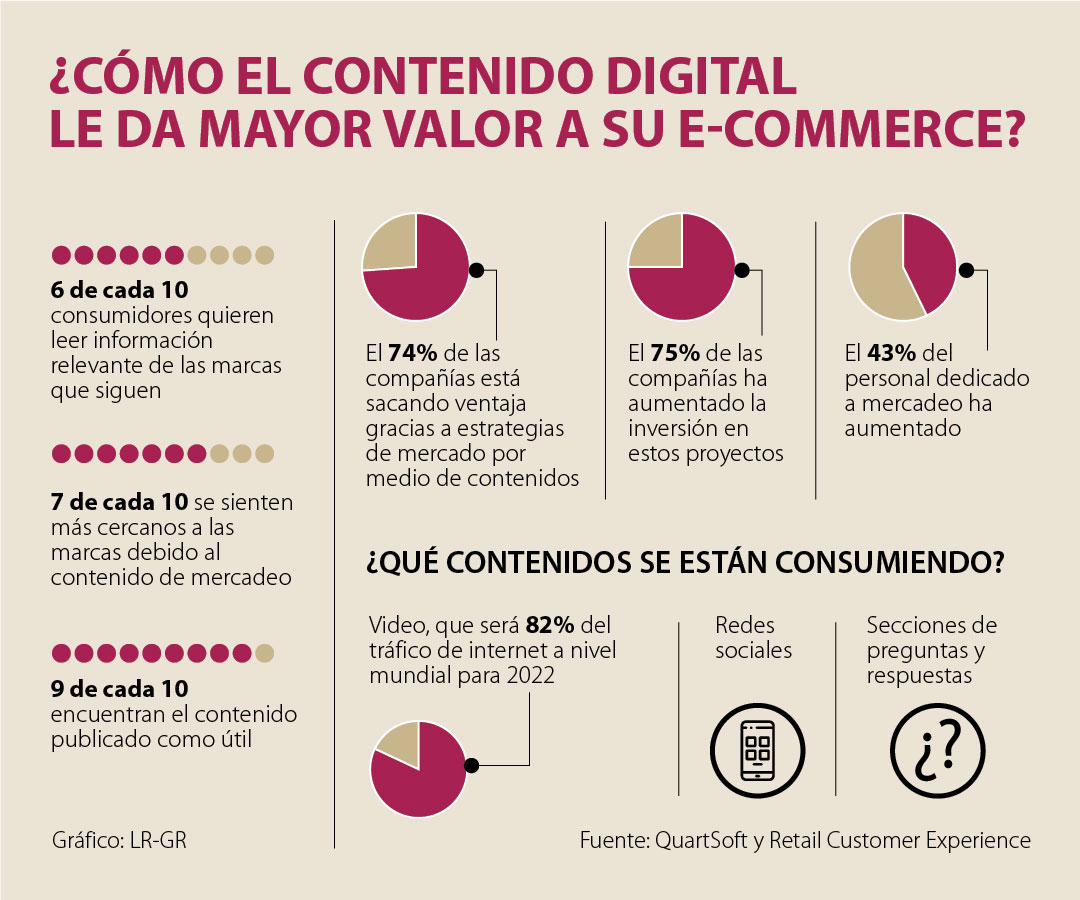 Y más para una organización dedicada al comercio electrónico, que debe estar en permanente exposición con sus clientes a través de una plataforma digital que brinde una experiencia amigable y genere confianza. Según la publicación Retail Customer Experience, “el contenido excepcional puede generar consumidores más satisfechos y mayores ventas. Después de todo, la mayoría de los consumidores interactuarán con una marca más de cinco veces antes de realizar una compra”.