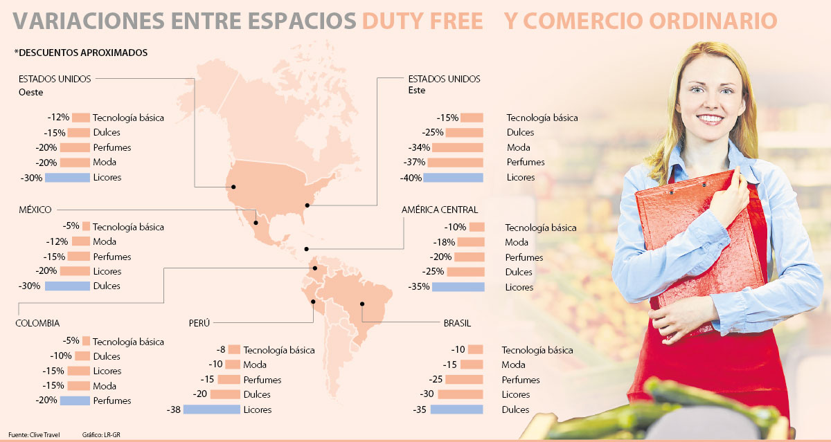 Y el primer acercamiento evidenció que, según la zona de América, hay espacios que le pueden ofrecer 40% de ahorro sobre la tarifa ordinaria. Exactamente esto sucede en los Duty Free del este de Estados Unidos en licores, mientras que en el oeste (aunque sigue siendo alto el descuento) pasa a 30%. De esta manera, en cuestión de bebidas alcohólicas están los mejores descuentos.