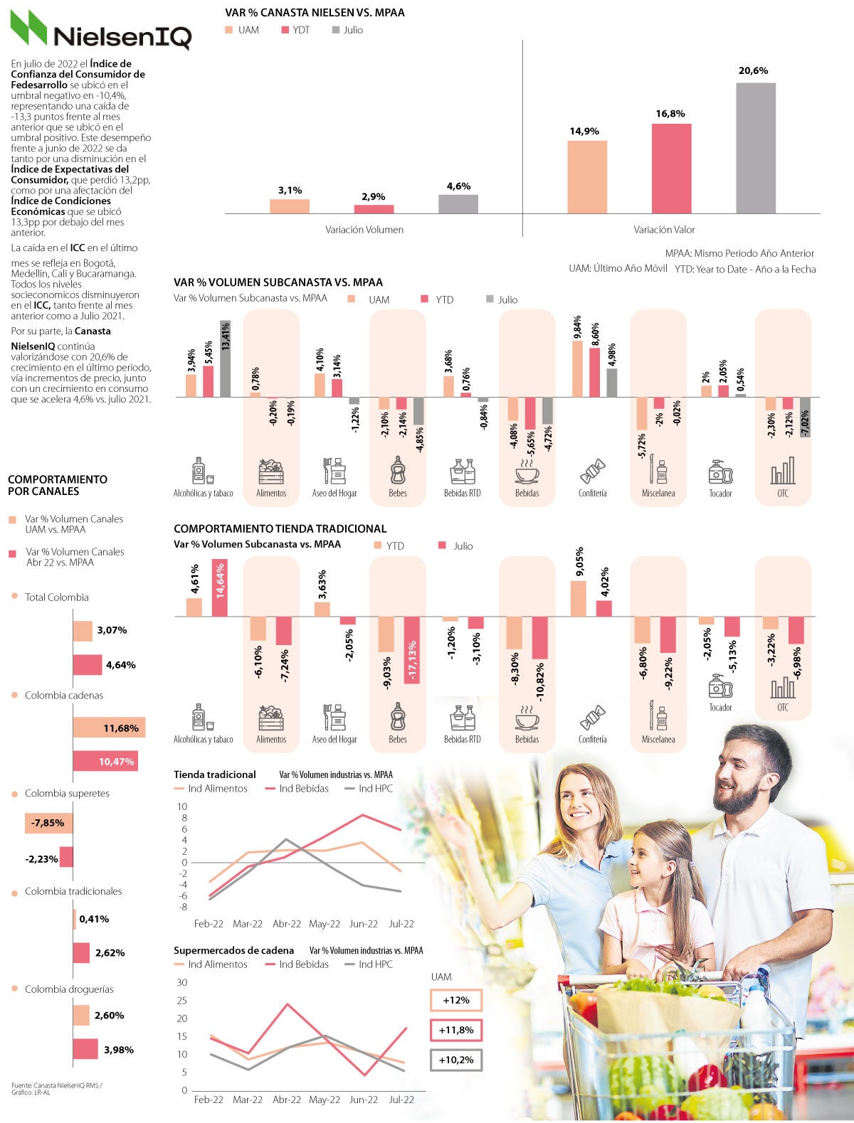Se refleja una variación positiva de 4,6% en el consumo. Los canales de compra que más crecen son las cadenas y las droguerías