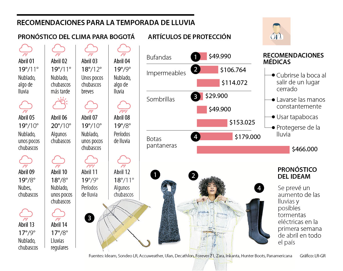 Para lucir bien durante esta temporada no solo debe tener en cuenta la ropa, sino su salud. Ricardo Quintero, médico de la Universidad Nacional explicó que “los cambios de temperatura acarrean un aumento en las infecciones virales, por ello se recomienda lavarse las manos con frecuencia y protegerse de la lluvia”.